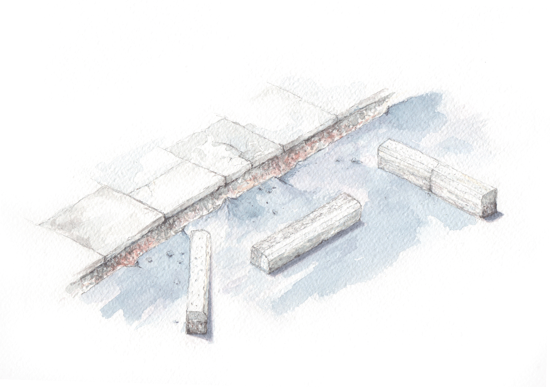 This research project presents the fundamental street infrastructure of our cities; roads, pavements, and associated systems, as malleable. The premise of this exploration is that dense, equitable cities, with clean air must be our future, which means a radical redistribution of street space; from the car, to pedestrians, bikes and public transport. This project visualises the forceful breaking of elements that seemed previously immovable - parking spaces, kerbs, crossings, access to cars - and imagines a future exhibition of these artifacts looking back at the era of the car-dominated street.